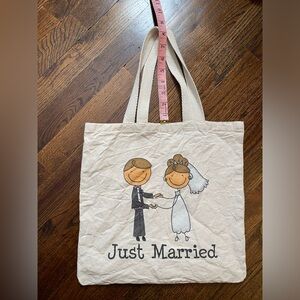 Just Married Canvas Tote Bag newlywed novelty print tote bag bride groom wedding