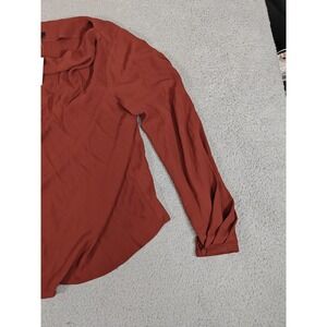 Ann Taylor Factory Shirt Womens Small Rust Drape Neck Long Sleeve Blouse 552128