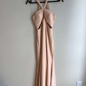 Aidan Mattox Blush Pink Halter Cutout Crepe Gown
