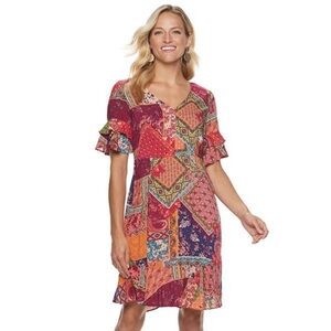 Sharagano Patchwork Print Fit & Flare Dress Size 4