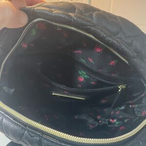 Betsey Johnson Black Heart Quilted Faux Leather Backpack and Wristlet