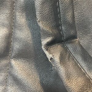There is minimal chipping in the faux leather. It is photographed. Feel free to ask me any questions.