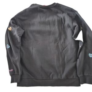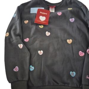 Stylish gray sweatshirt new with tags featuring colorful heart patches. Perfect for Valentines Day.