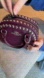 Berry purple pebbled leather, silver rivets and hardware. Removable longer adjustable strap. purple. Zip closure.