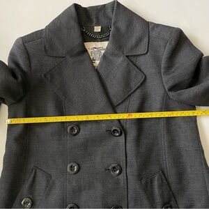 Burberry London Cotton Linen Double Breasted A-Line Peacoat Charcoal Gray