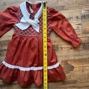 VTG Sears Winnie The Pooh Girls Rust Smocked Bodice & Bow Dress Size 3T