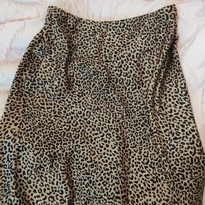 Chic animal print A-line skirt. Perfect for versatile styling. Slip skirt, midi length so it should sit a little under your knees. Elastic waistband. Only worn twice. Pairs well with a belt!