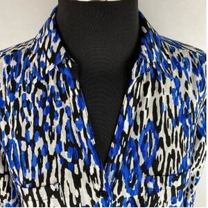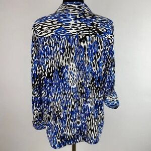 Talbots Nantucket Plus 3X Blue Animal Print Career Roll Tab Button Blouse