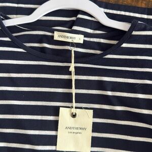 Elevate your style with this chic striped top featuring elegant flare sleeves. Perfect for any occasion, this black and white top adds a touch of sophistication to your wardrobe. Shirt by ANDTHEWHY Los Angeles