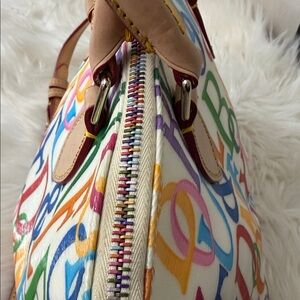 Vibrant and stylish handbag featuring a multicolor design. Perfect for adding a pop of color to any outfit.