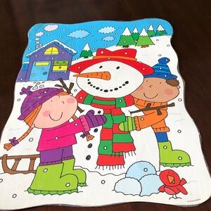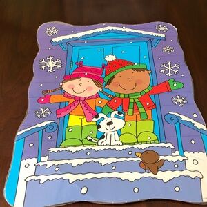 Set of colorful tree and snowflake cutouts. Perfect for holiday decorations. Includes vibrant green trees and blue snowflakes. Set of six posters depicting fun winter activities
