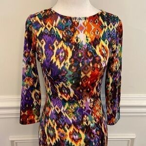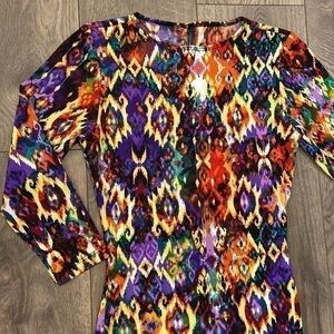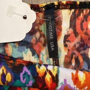 GoodTime USA bodycon dress. Multi colored unique design. Quarter length sleeves. Pulls on. Pit to pit is approximately 15 inches. Length is approximately 39 inches. Comfortable material with 96% polyester and 4% spandex. New with tag.