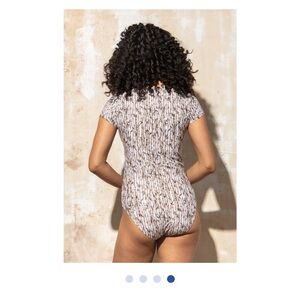 Mott50 Madeline Short Sleeve V Neck One Piece Swimsuit Bamboo Forest size Large