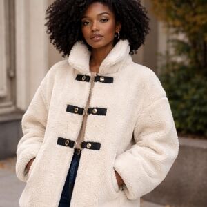 Zara | Ivory Sherpa Fleece Teddy Coat Toggle Closure