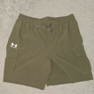 Stay comfortable and stylish with these Under Armour olive green cargo shorts. Perfect for casual outings, these shorts offer a relaxed fit and practical pockets.