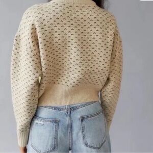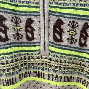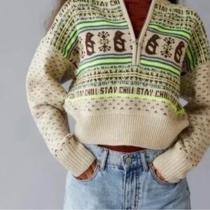 Urban Outfitters BDG Beige and Lime Patterned V-Neck Sweater