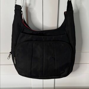 TRAVELON Men's Black Faux Leather Sling Bag