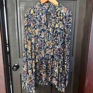 Umgee tunic, floral mini dress, boho top, flowy blouse, navy floral dress, peasant style, oversized tunic, festival wear, high neck dress, keyhole top, botanical print, size medium dress