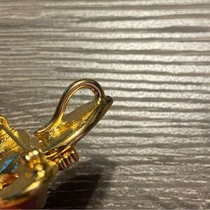 Vintage Signed Premier Designs Gold & Red Enamel Fleur de Lis Brooch & Pendant