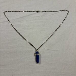 Blue Crystal Point Pendant Necklace Silver Tone Chain Elegant Gemstone Jewelry