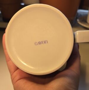 This is an Avon Sweet Sentiments 'Love is" double heart handle coffee mug. The mug features interlocking hearts with love quotes and is in great condition. 12 ounce size, 4" inches wide (including handle).