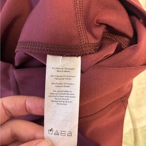 Chic burgundy leggings. Perfect for yoga and workouts. There are a couple flaws on these - may be wearable/fixable that is why the price is low. The little rip is on the bottom area Nice burgundy colour