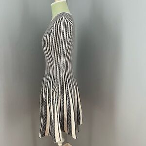Gianni Bini Black White Striped Long Sleeve Knit Sweater Midi Dress