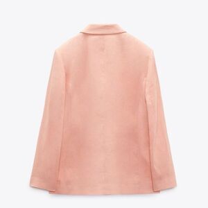 Papel collar blazer with long sleeves. Front flap pockets. Front double breasted button closure.