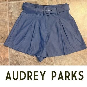 NEW NWT Audrey Parks Blue Pleated High-Waisted Belted Shorts – Francesca’s M
