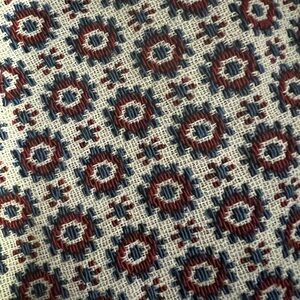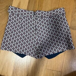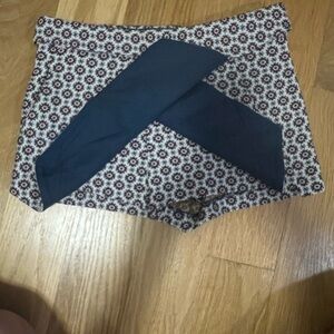 Stylish skort with a red and blue geometric pattern. Features a wrap design, front pockets and back zip. Perfect for casual outings.
