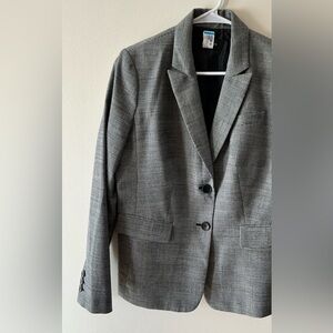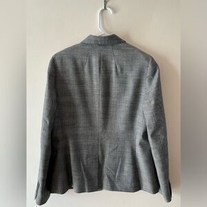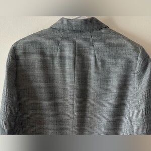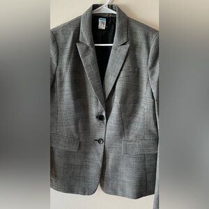 Stylish black and grey plaid pant suit. 2 button jacket with 3 buttons on the sleeves. Tailored pants. Classic and elegant design. In excellent condition.
