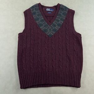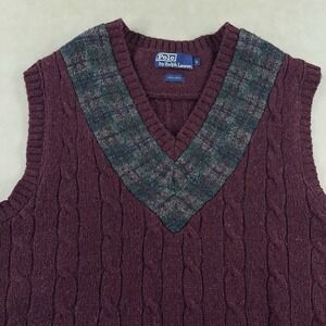 Vintage Polo Ralph Lauren Wool Cable Knit Sweater Vest Medium RRL Preppy 90s
