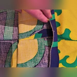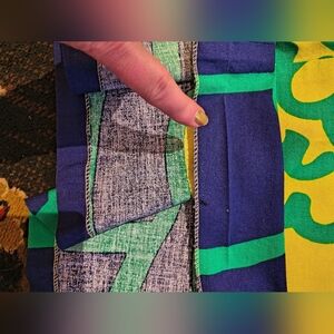 Incredible vintage Finnish dress from Merry Finn, reminiscent of Marimekko. Excellent vintage condition. Please see pictures for measurements and feel free to reach out with questions- vintage sizing is tricky! note: one section of the back of the skirt is ironed in place but not hemmed. The edge is finished not raw. but is not tacked into place. This does not detract from the wearability of the dress. This is marked a vintage 12 but again please look at the photos and measurements it is significantly smaller.