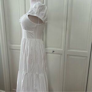 ASOS white maxi dress featuring a cottage-core/bohemian style.