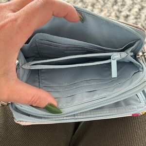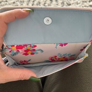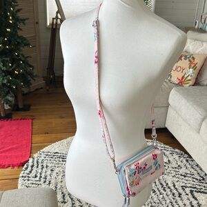 Vera Bradley Crossbody Wallet | Floral RFID Zip Wallet Bag Pink and Blue