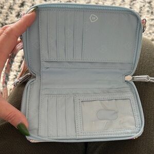 Super cute Vera Bradley crossbody wallet in a soft blush pink floral print. Lightweight, hands-free, and perfect for errands, travel, concerts, or everyday minimal carry.
