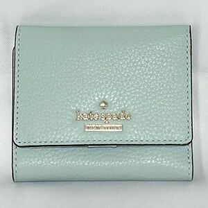 Kate Spade Jackson St Jada Pebbled Leather Trifold Wallet Light Blue/Green