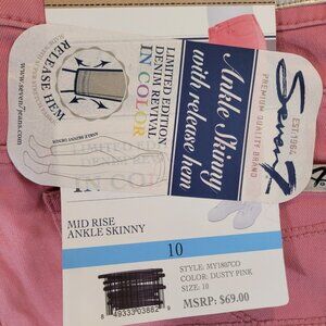 NWT Seven 7 Jeans Womens 10 30x29 Pink Mid Rise Ankle Skinny Stretch Denim Pants