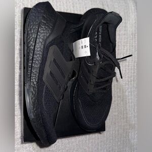 All-black design. Lightweight and breathable. Adidas ultraboost 21 shoes! Mens size 7.5 or fits like womens size 8.5-9
