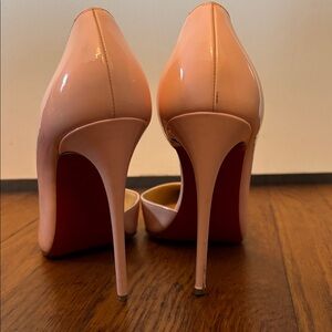 Elegant blush pink heels with signature red soles. Perfect for adding a touch of luxury to any outfit. With box and dust bag.