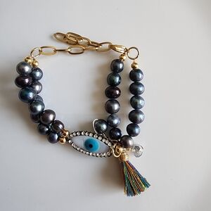 Embrace mystique with this captivating black pearl necklace featuring a striking evil eye charm. Perfect for any occasion. NEW HANDMADE ✨️