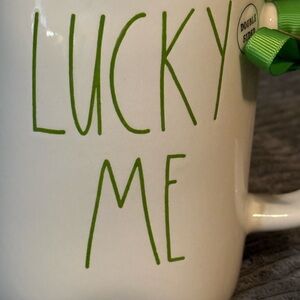 Rae Dunn White Mug with Green 'Lucky Me' Design