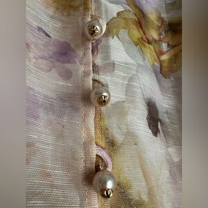 Bought this set for an event but didn’t end up using it. I also noticed tiny flaws on the buttons and complained to Zimmermann, so they sent me a bunch of replacement buttons. The deep discount is because of this flaw! Top is size 1, bottom in size 3! I am a size S on top, M-L on bottom for reference. I am currently not interested in selling the top and skirt separately. The price is for both!