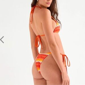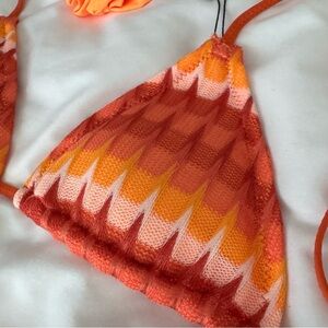 NWT OneOne Swimwear Bikini SET Samana Cay Crochet New Orange Red Knit Zigzag