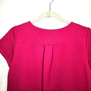 Jude Connally short, shift dress. Cap sleeves. Magenta pink, round neck, pullover style.