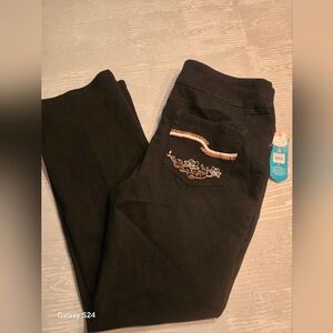 Tan sandals with pink floral embellishments. Stylish and comfortable design. sandals are in excellent cond but each shoe has one of the snaps broken on the flower that snaps on