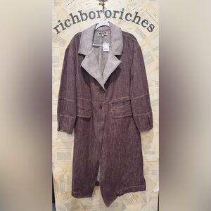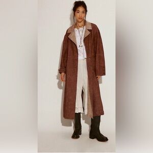 Free People Micah Wash Duster Maxi Flap Pockets Button Lapels Brown Combo