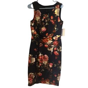 Enfocus Studio Women NWT Navy Floral Rose Chain Detail Sheath Dress Size 10