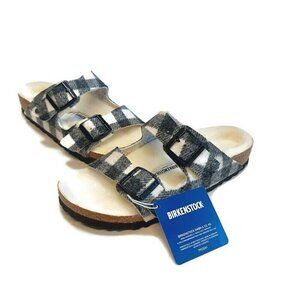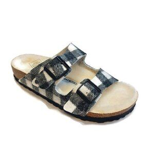 Birkenstock Arizona Rivet Fur Lined Wool Sandals Womens Size 5 Plaid White EU 36