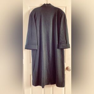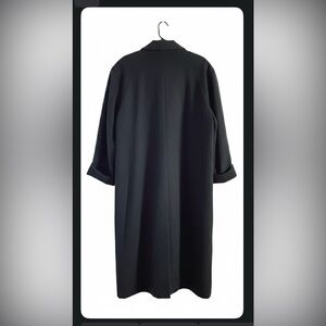 The International Scene Russian-made long black lined coat is a stylish and versatile piece perfect for the winter and fall seasons.